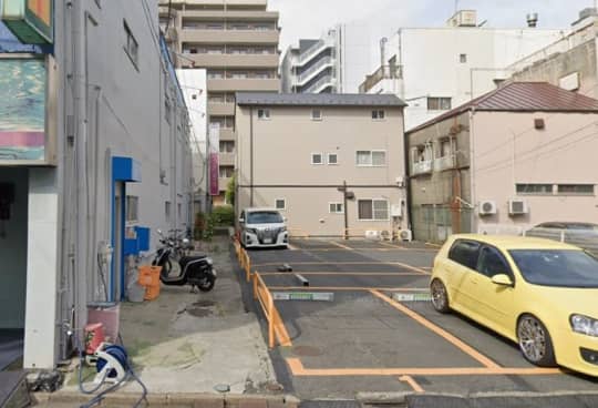 奥まった場所にあるので分かりづらいかも知れませんが、手前にあるコインパーキングが目印ですよ。